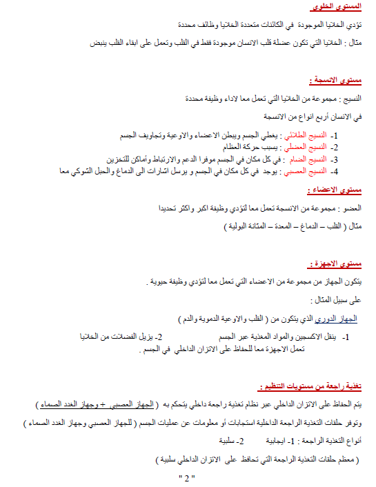 ملخص أحياء 1 المستوى الثاني علوم الفصل الثاني المناهج السعودية